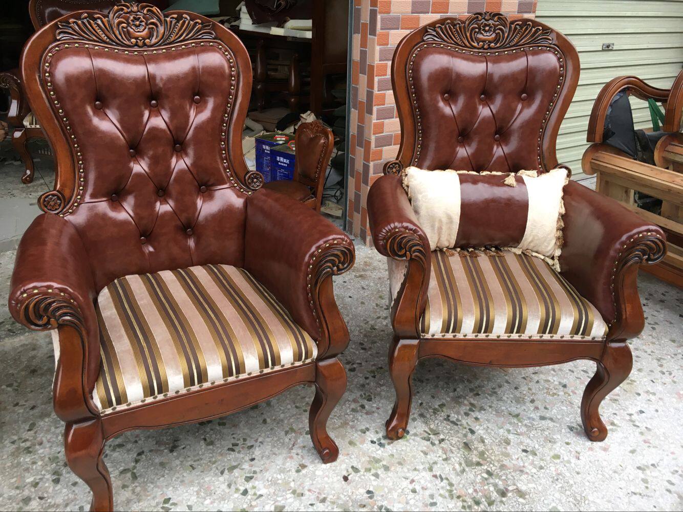 Solid wood leather chair (including lumbar pillow)