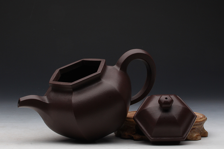 Taiwan circulating old purple sand pot famous master Xu Hantang early handmade six-square drop ball pot