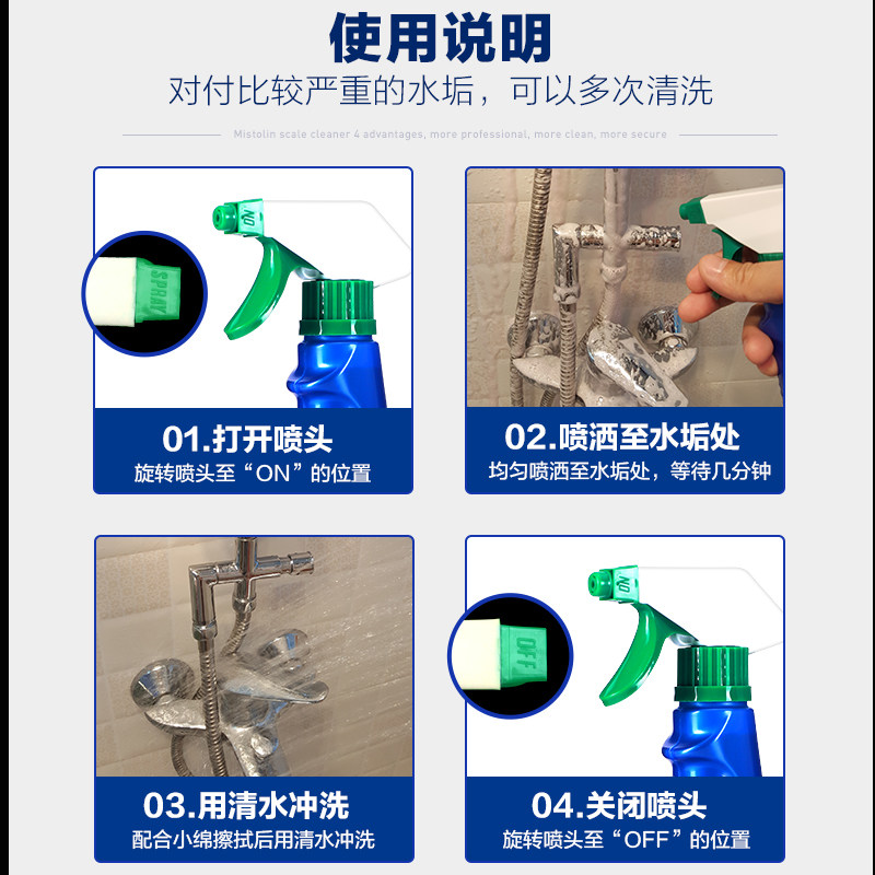 mistolin bathroom cleanser glass water scale scavenger tap washing bathtub tiles powerful de-scaling