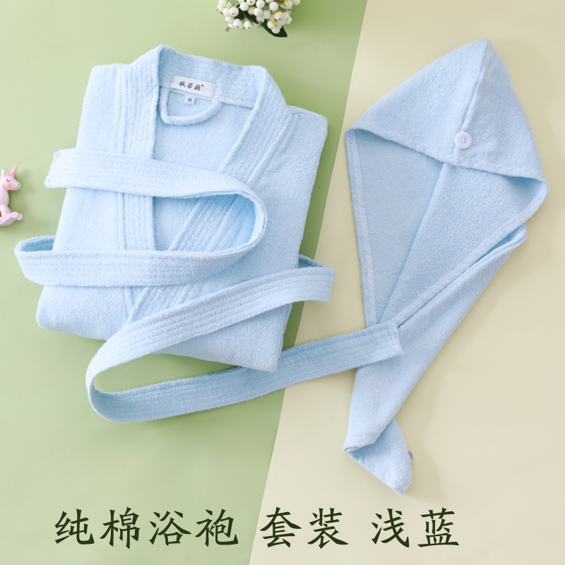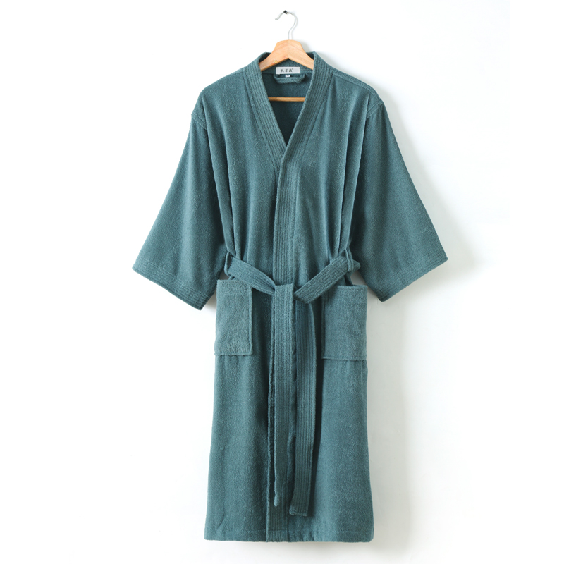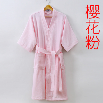 Bathrobe women's cotton thin men's medium and long towel material absorbs water quick dry spring and autumn swimming couple yukata seven-quarter sleeves