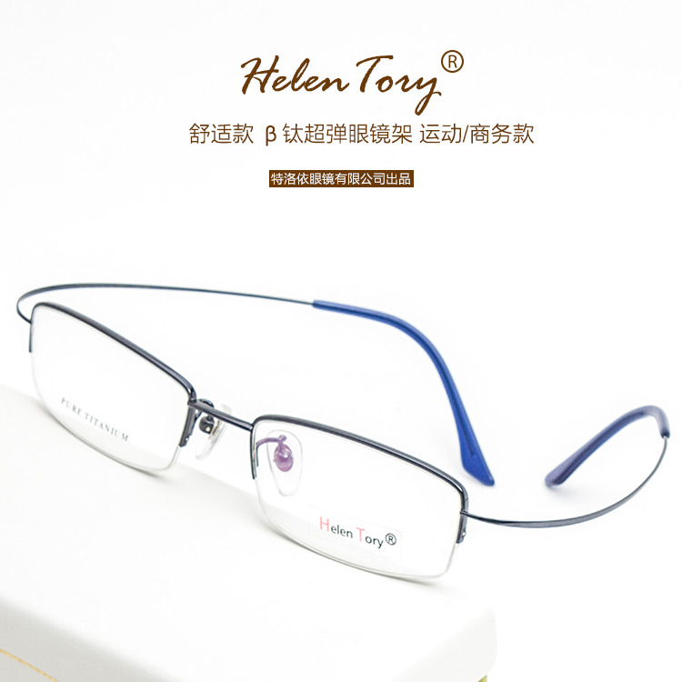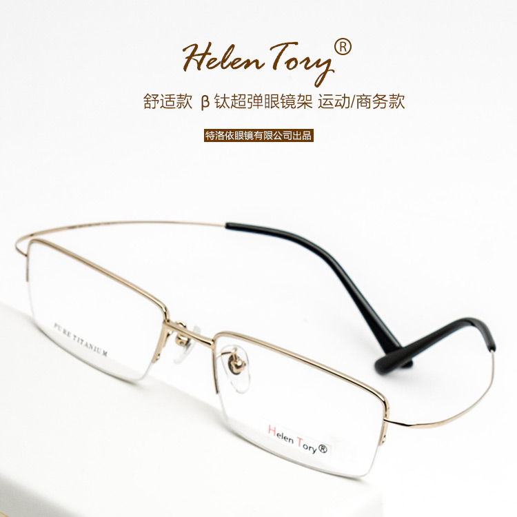 Helentory light half frame pure titanium myopia glasses for men and women with finished products with degrees of discoloration and anti-blue light