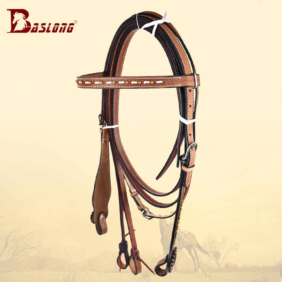 Western cowboy water le reins riding ruby horse cage head reins harness cowhide import wild ride BCL336112