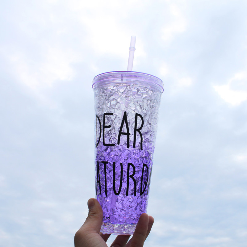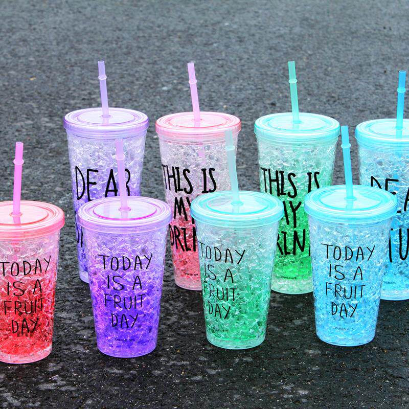 Korean version of Qingyi Square 0-degree Summer Ice Cups Double plastic cup Ice Drink Ice Cool A Summer Cartoon