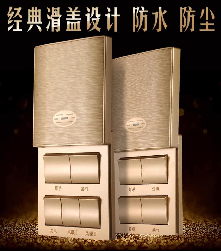 International electrician Bath switch five open universal 86 type sliding cover waterproof heater carbon fiber 5 open panel fragrance