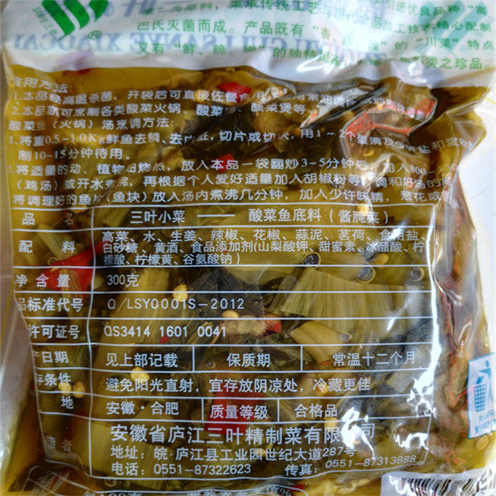 Jiangsu, Zhejiang, Shanghai and Anhui 6 yuan unlimited weight Anhui Lujiang three-leaf side dish sauerkraut fish seasoning 300g pure sauerkraut hot pot