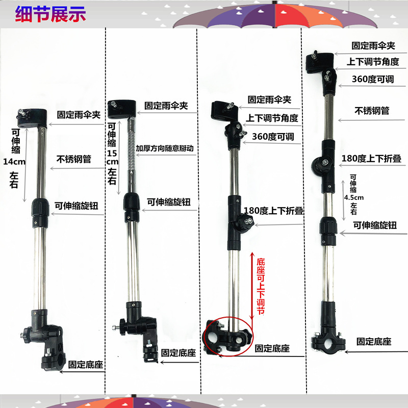 Thickened stainless steel shared bicycle bicycle umbrella bracket universal electric vehicle umbrella clip umbrella frame sun umbrella frame