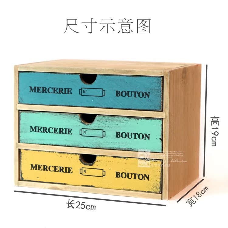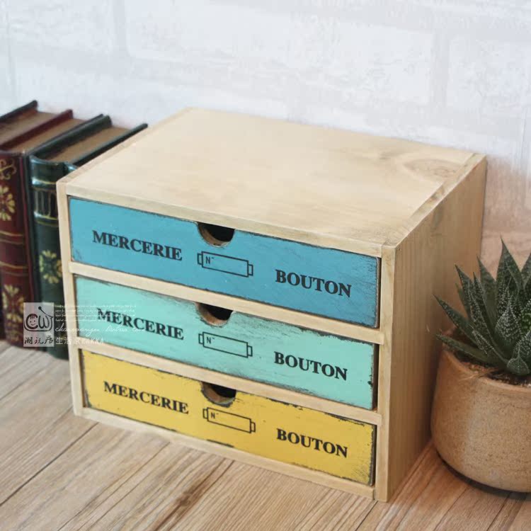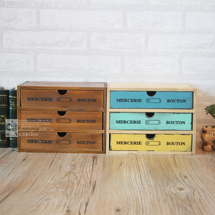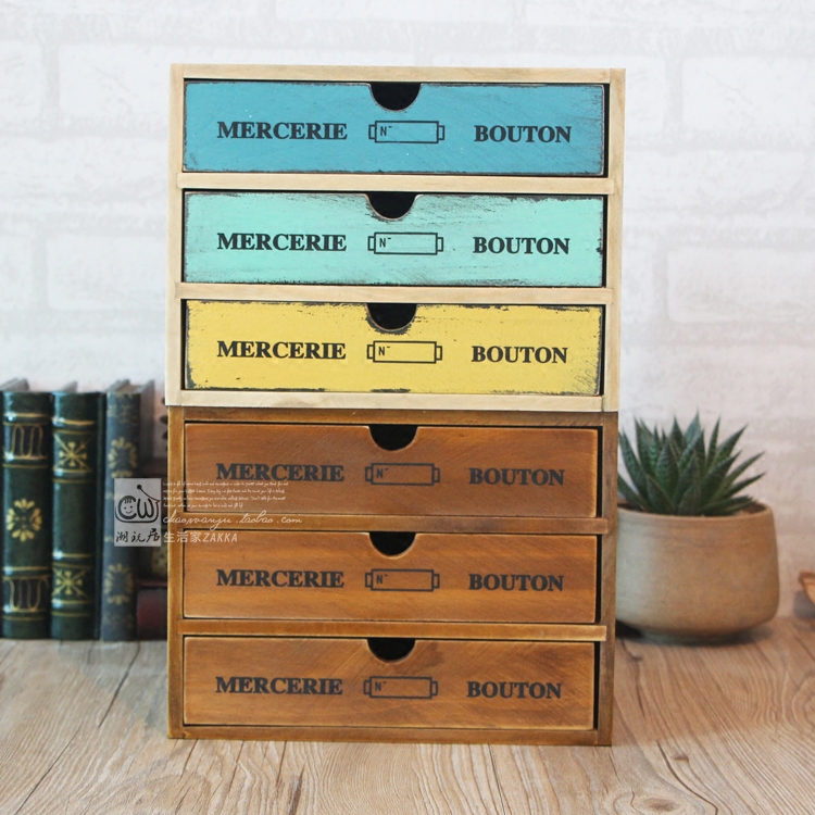 Wooden tabletop storage cabinet solid wood multilayer color trig drawers retro make old storage box home office storage