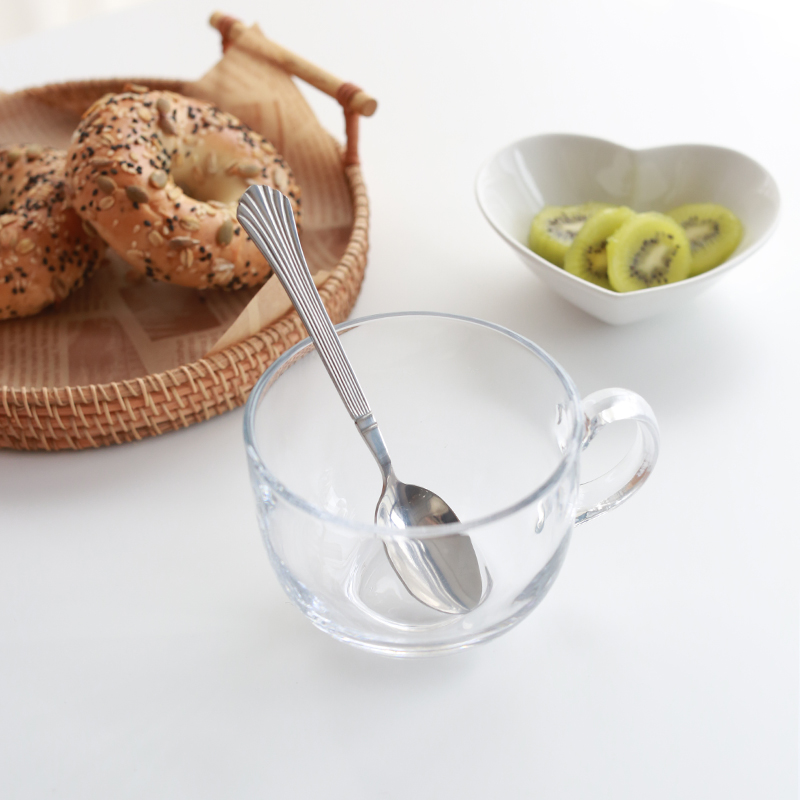 Breakfast Cup Delivery Cup Flower Ring Midsize Cup Cushion Vertical Striped Stainless Steel Spoon