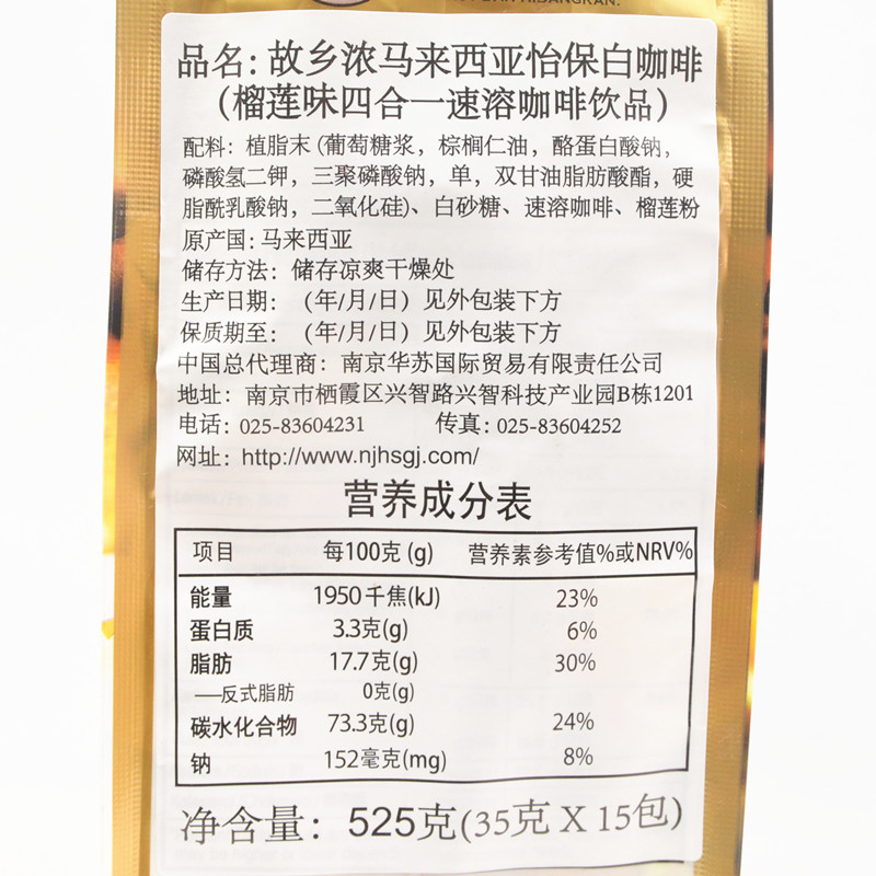 Malaysia imports the hometown of Heyi Pyo Power Instant White Coffee Powder 4 in-1 Durian flavor 525g*2 pack