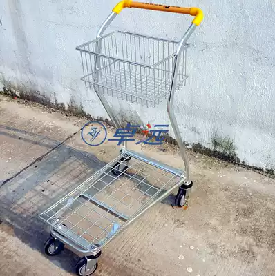 Supermarket shopping cart vegetable and fruit shop trolley truck KTV wine cart small double-layer supermarket shopping cart