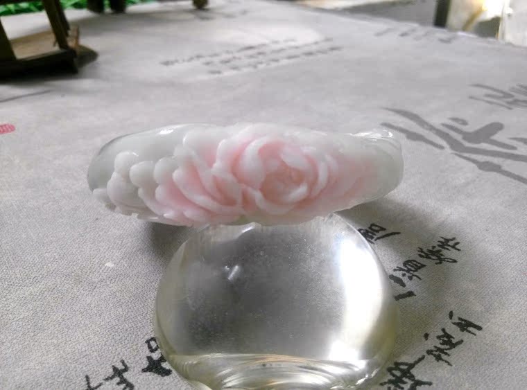 The customer ordered a separate mountain jade hibiscus red carved dragon and phoenix Chengxiang peony bracelet wide strip ring mouth natural jade female model