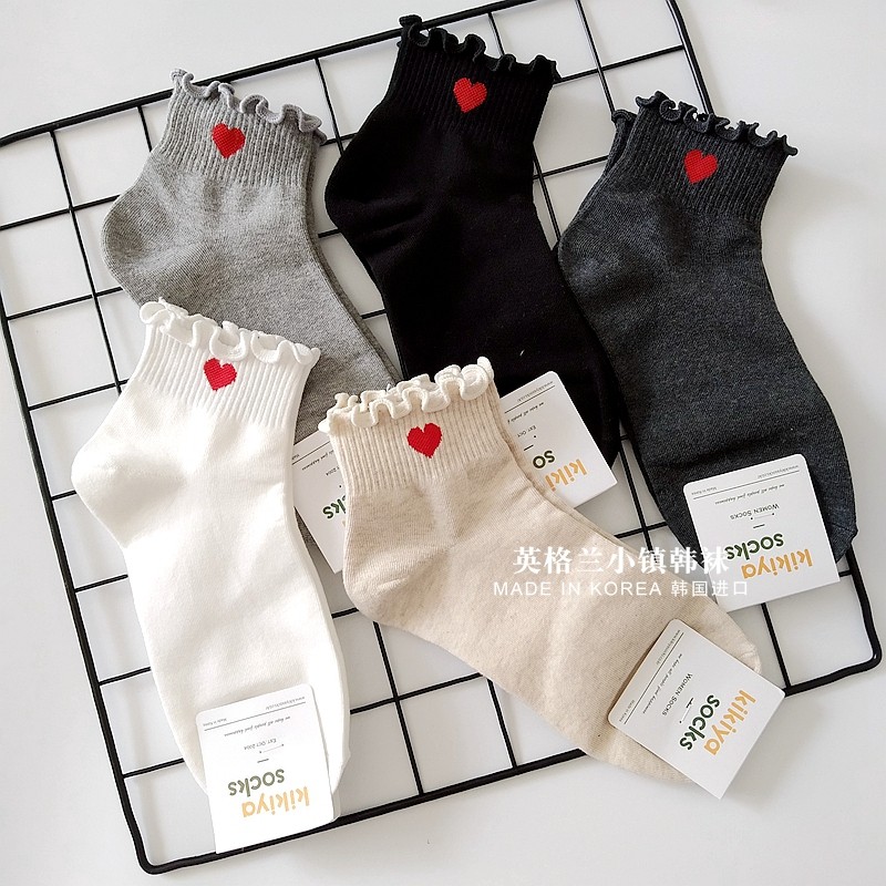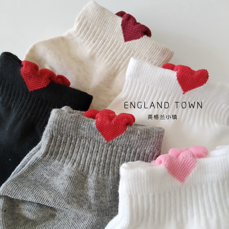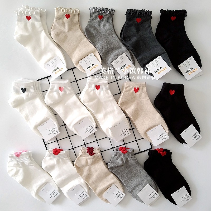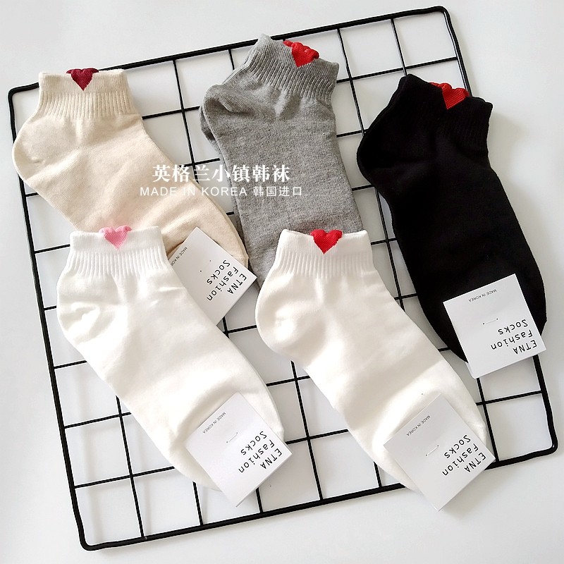 Korean Dongdaemun red heart-shaped socks cute short tube summer cotton tide ins Japanese women with small white shoes black