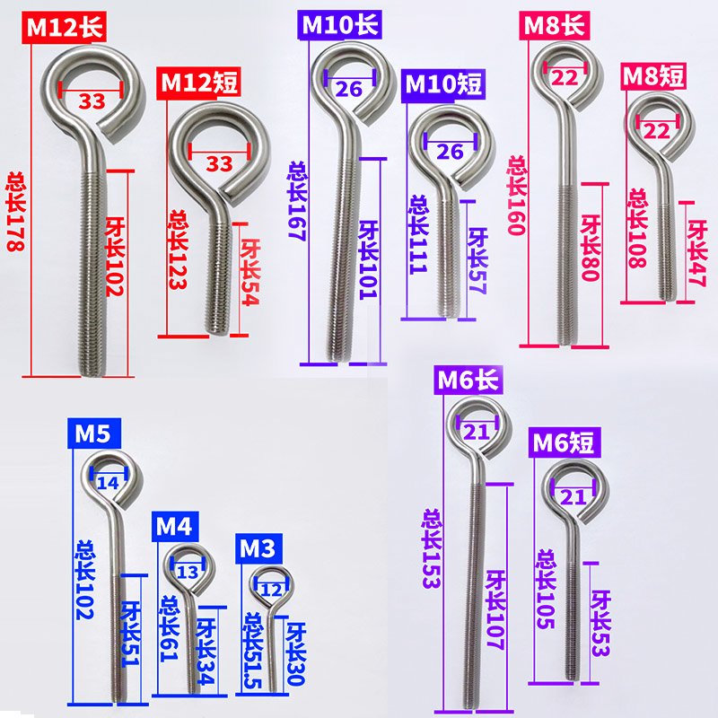 Stainless steel hook screw with hook bolt hanging ring sheep eye hook screw flower orchid hook M4M5M6M8M10M12