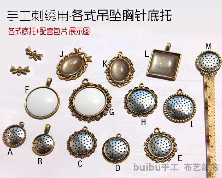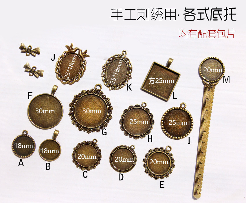 diy accessories Hand Embroidered Brooch Pendant Bottom Nursery round square Oval Gem seat 18-35mm with assorted bag sheet