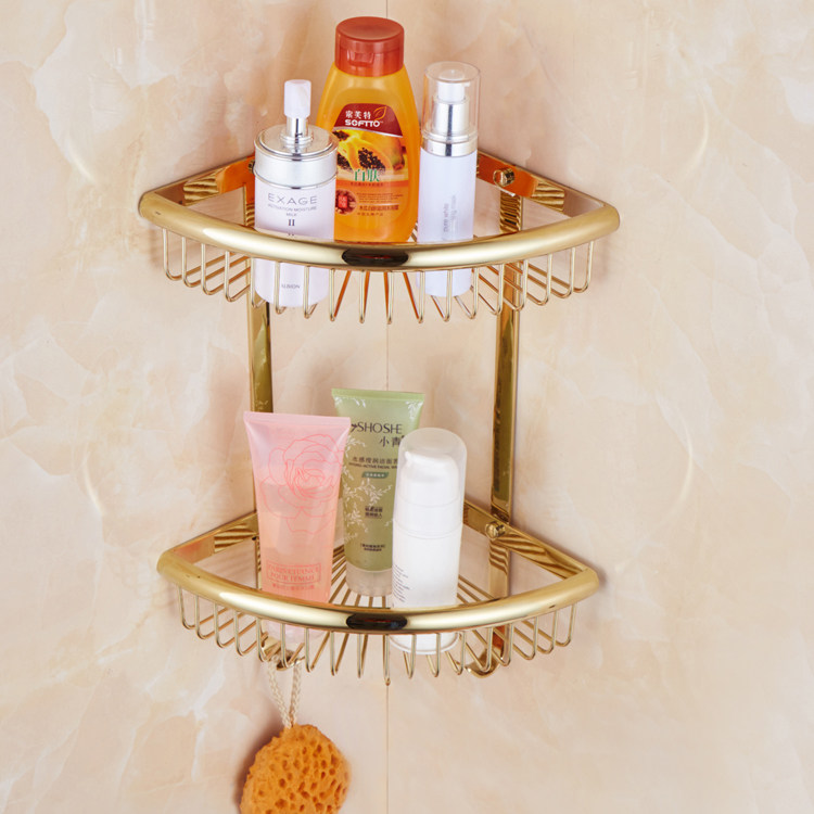 Eurostyle Makeup Room Tripod Bathroom Corner Basket Full Bronze Triangular Basket Gold Corner Shelf Bathroom Hardware Pendant