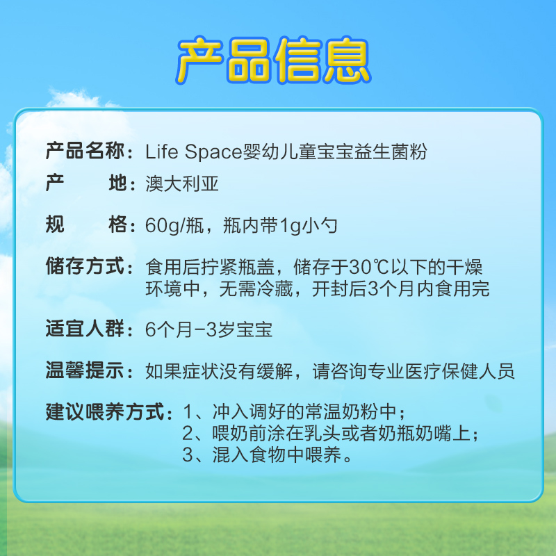 life space baby probiotic powder 60g Infant children baby conditioning stomach 6-36 months imported from Australia