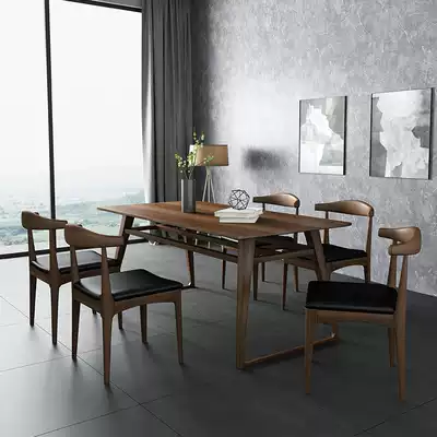 Household small apartment dining table rectangular Nordic all solid wood dining table and chair combination modern simple dining table dining table