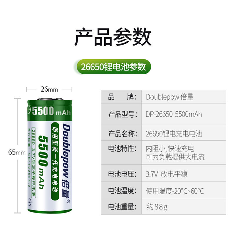 Double quantity 26650 Lithium battery intense light flashlight supermax capacity 5500 mAh 3 7V4 2v rechargeable battery