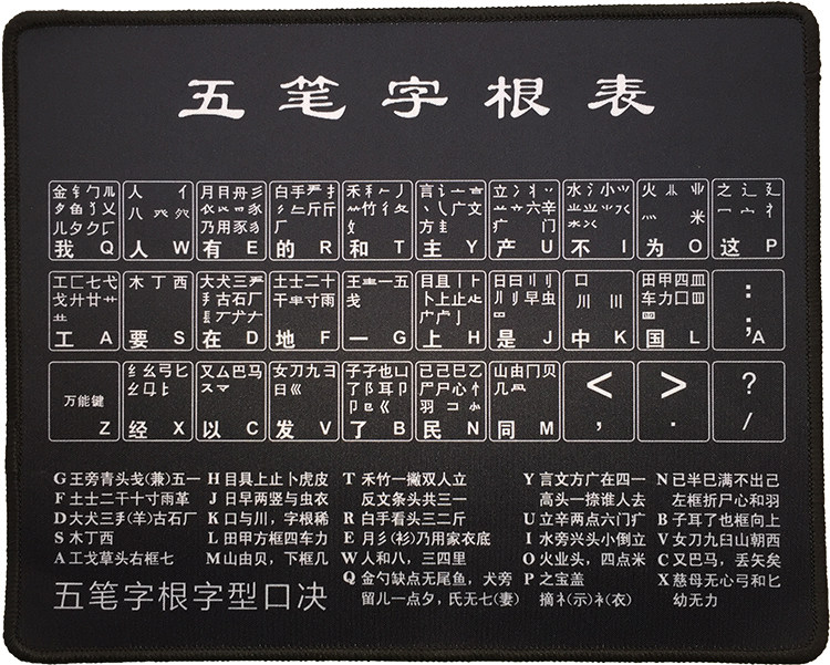 High definition computer Wuerpen Mouse Pad Five Strokes of typing Words Root Table Slip Rat Mat Precision Lock Side No Taint
