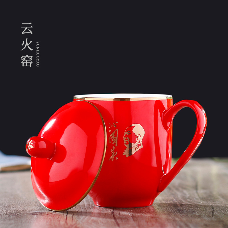 China Red Porcelain Ceramic Tea Cup Office Tea Tea Home With Lid Mao Zedong Qinyuan Spring Poetry Word Gift Cup Custom