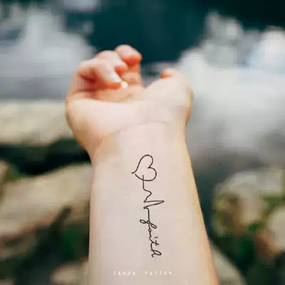 She drew electrocardiogram ins Wind English short sentences simple heartbeat tattoo stickers line half arm waterproof female lasting