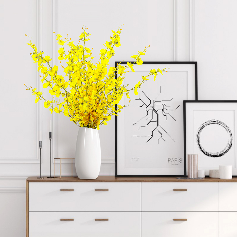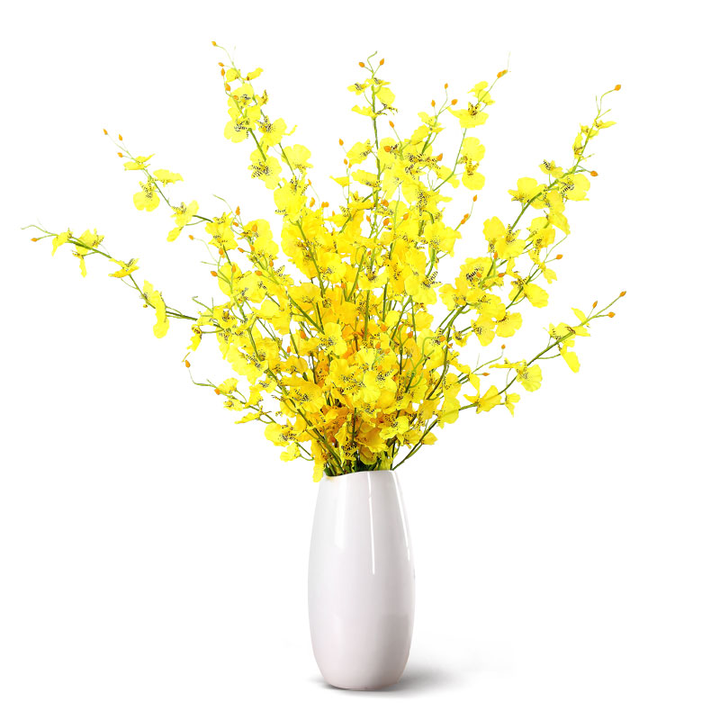 (Hot) Large vase + 8 lemon yellow dancing orchids (set price)