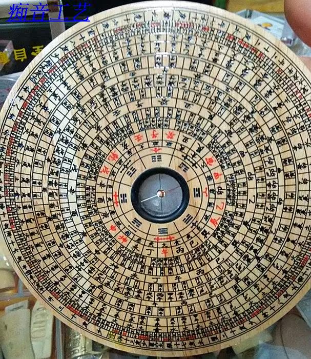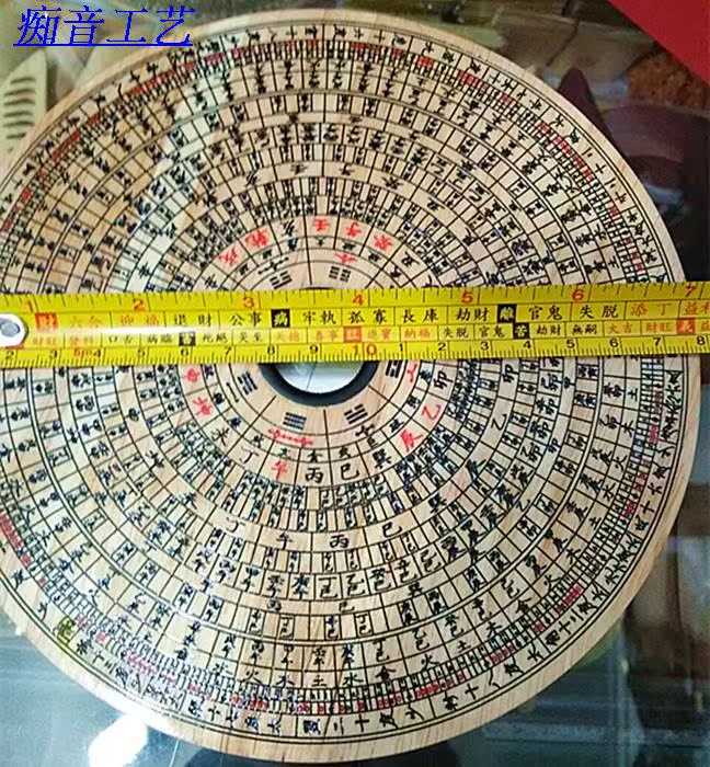Peach wood painted finely carved words Xiuning compass Feng Shui tool 18cm instrument