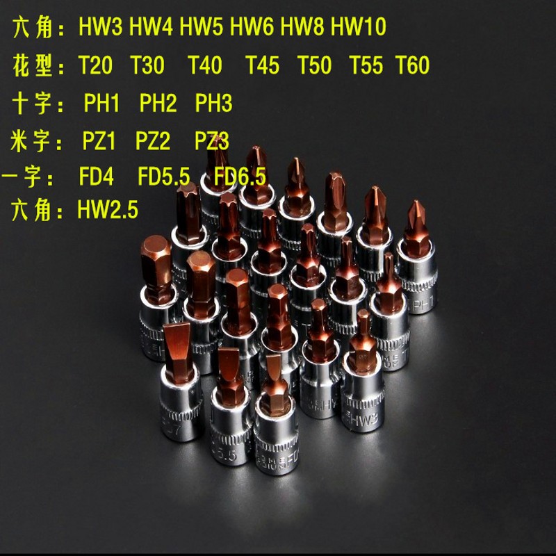 Flower-shaped word cross rice word 3 8 screw sleeve 10MM batch head sleeve screwdriver batch head ratchet screw sleeve