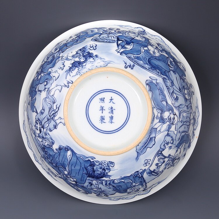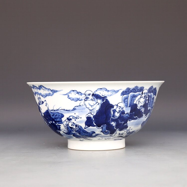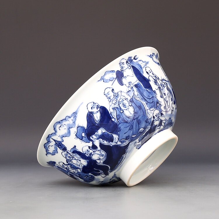 Daqing Kangxi year - old pieces of old artisanal antiques with all hand - painted 18 Luhan bowl