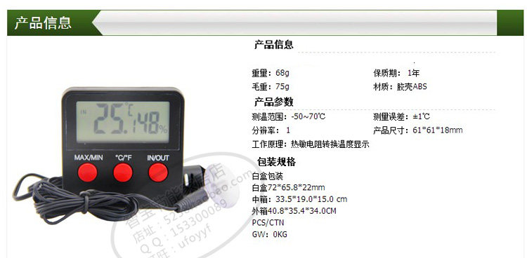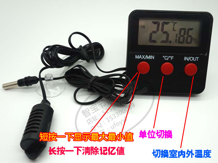 Double-monitor indoor and outdoor thermometer hygrometer Hygrometer Shelter Breeding Home Hatching Reptile 74