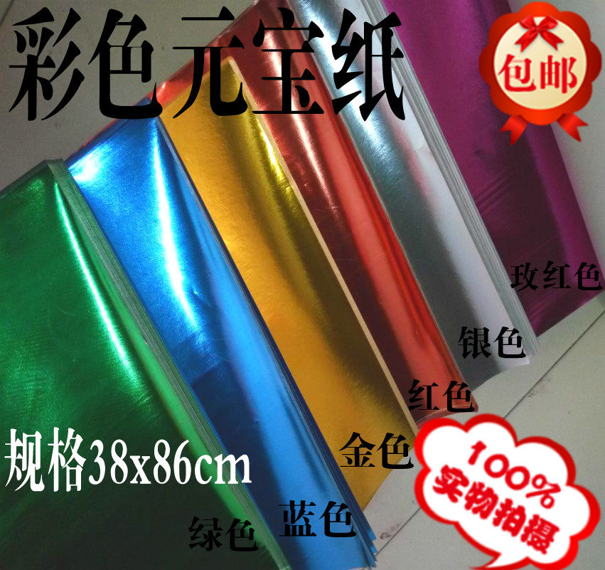 Large sheet of color ingot paper gold foil paper Silver foil paper folding ingot paper 38x86cm full hundred wholesale