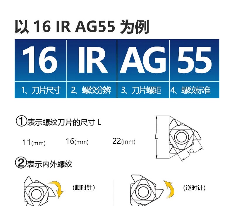CNC external thread blade turning head 11ER 16ER AG60 55 0 5~3 5 Steel parts for stainless steel