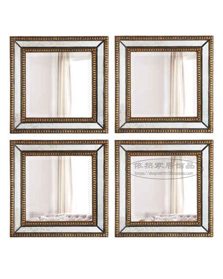 European-style antique and old square decorative mirror porch wall-mounted mirror dressing makeup mirror bathroom mirror combination four-piece set