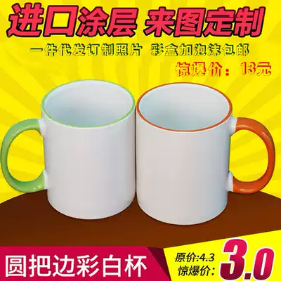Creative thermal transfer round handle edge color white cup First-class advertising coated white cup personalized ceramic mug wholesale