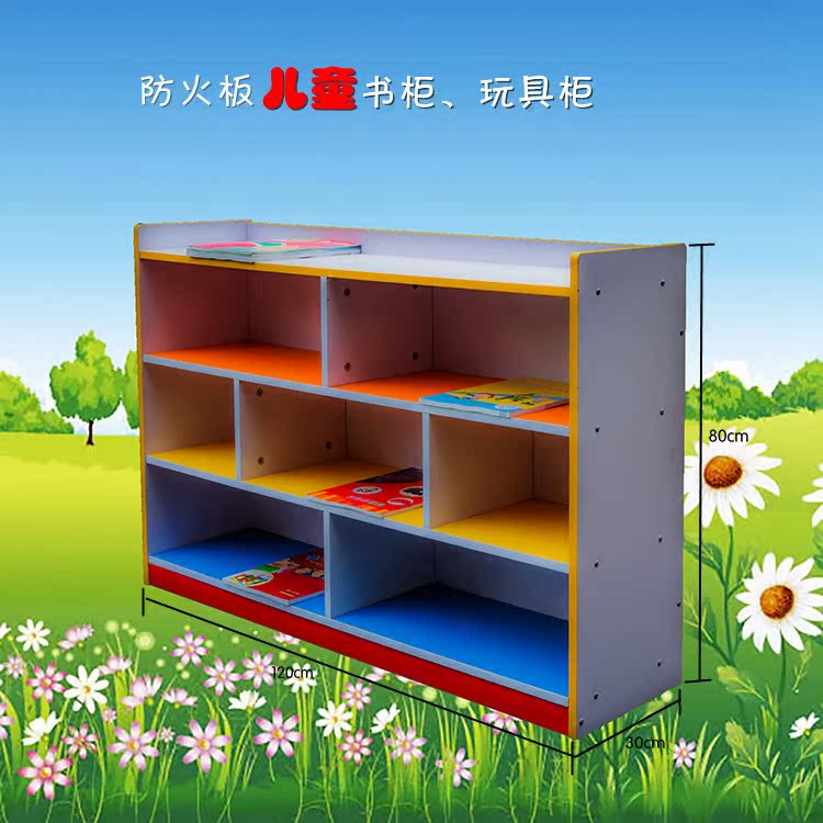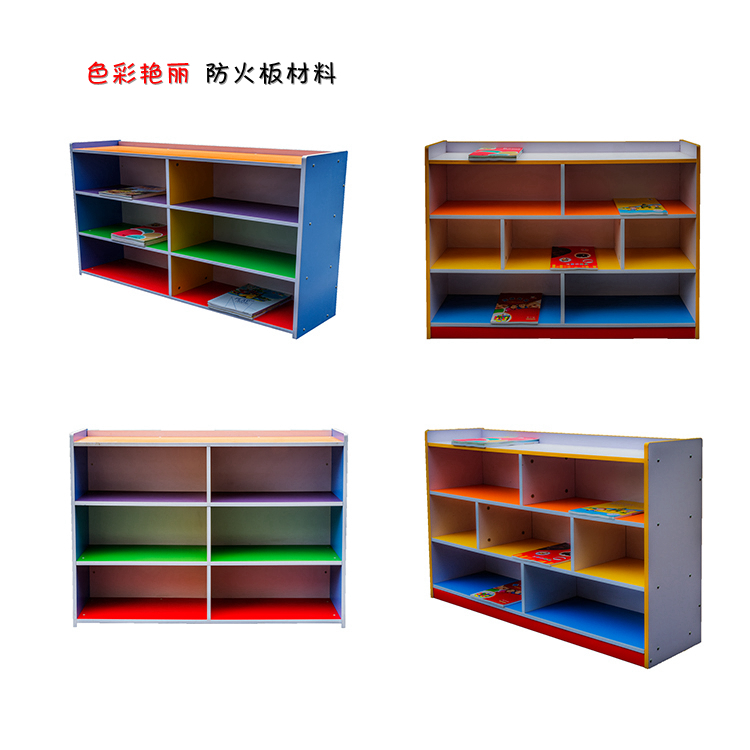 Kindergarten toy cabinet wooden color matching children's schoolbag cabinet fireproof board locker 6 grid storage cabinet environmental protection and tasteless