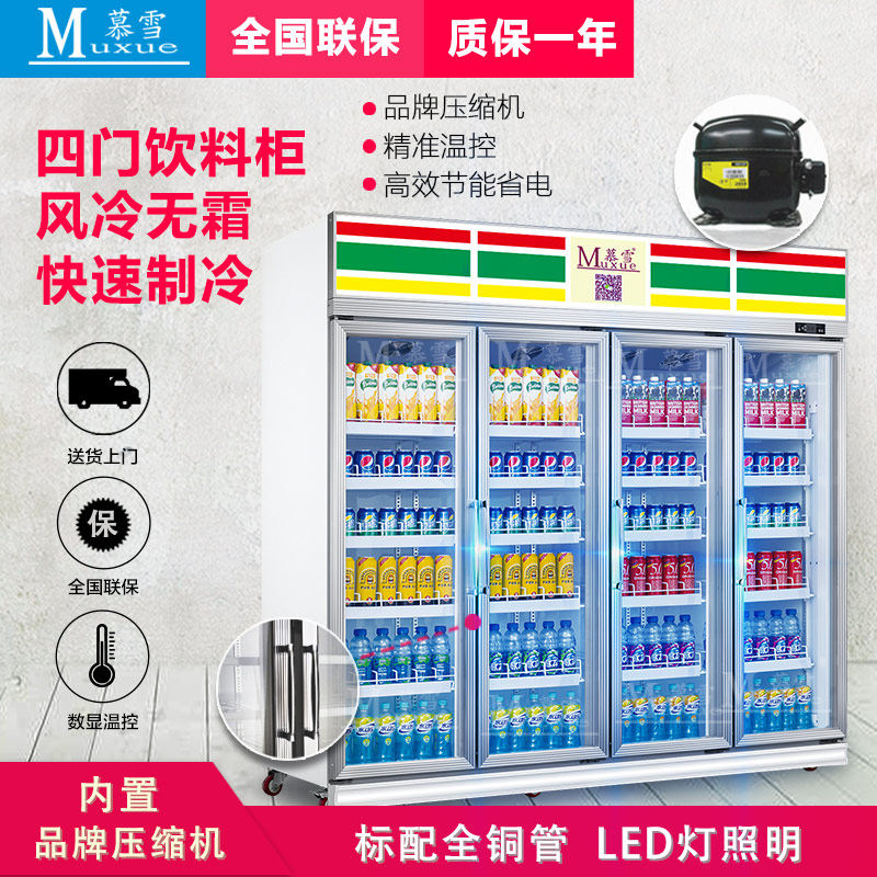 MousSnow Drinks Cabinet Supermarket Freezers Commercial Refrigerated Preservation Air-cooled Cabinet Standing Convenience Store Four Doors Display Cabinet Fridge
