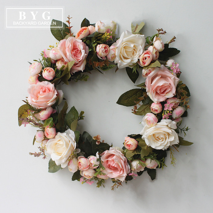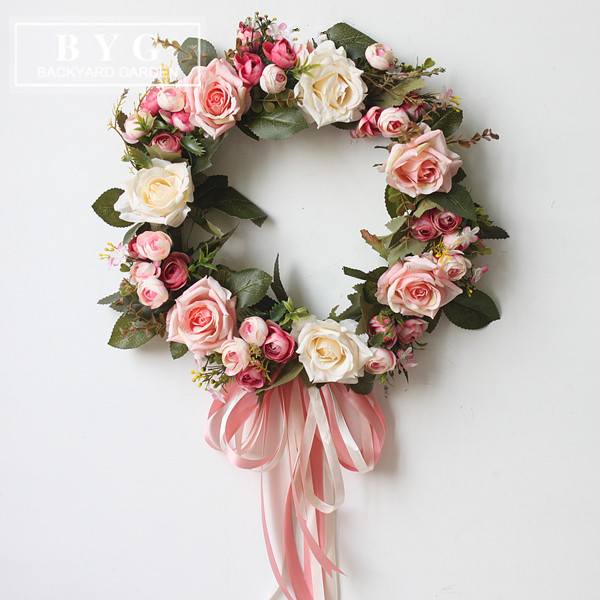 Rose simulation flower ring hanging decoration door decoration heart-shaped flower ring door lintel flowers Christmas new room bedroom house door decoration flower ring-Taobao