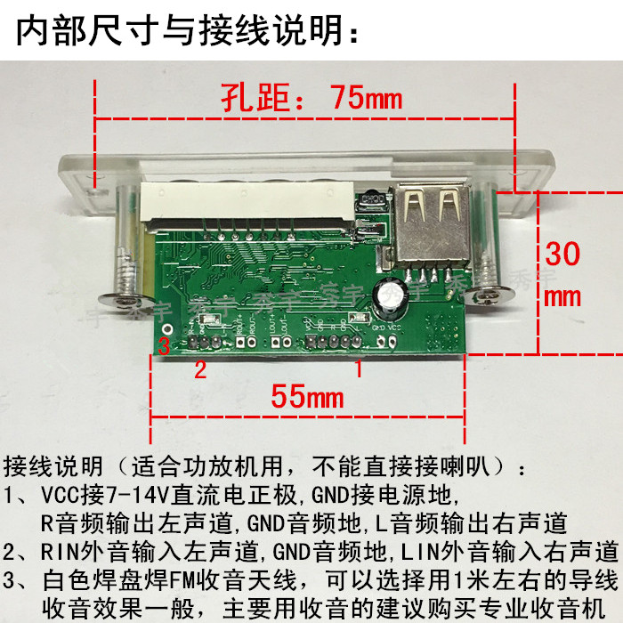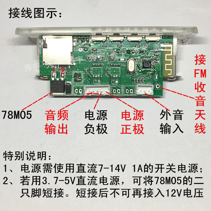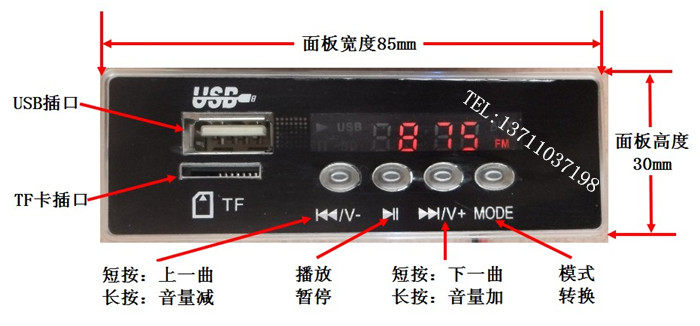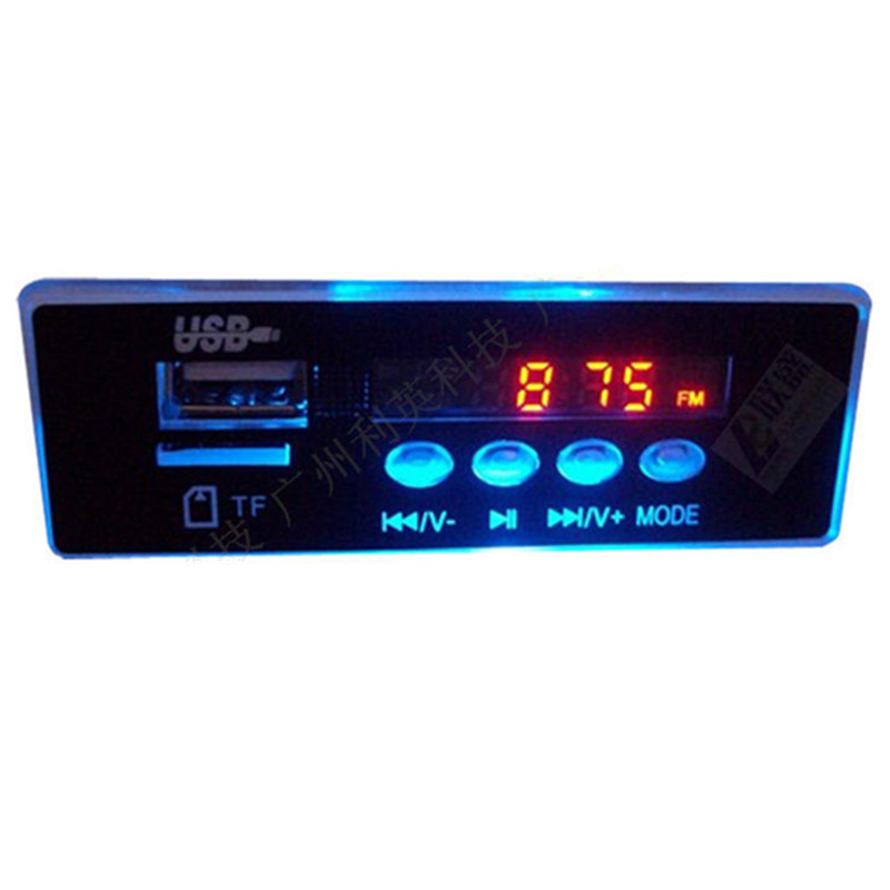 CT04 12V blue backlit MP3 decode board time display FM radio on-board TF card speaker player