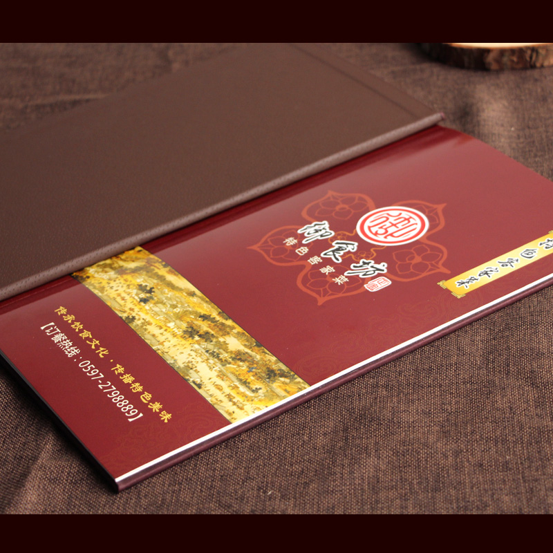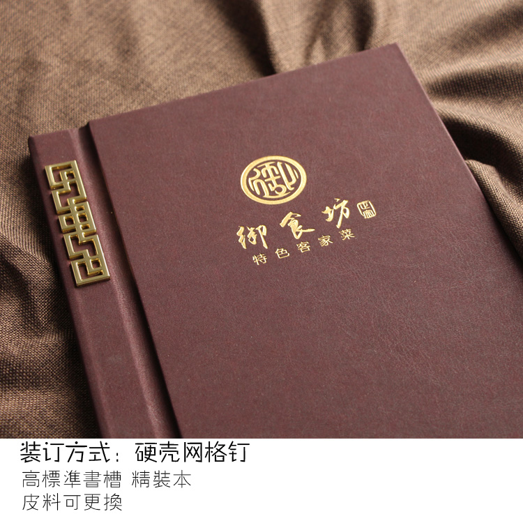 Prepare the printing design of high-end living refined recipes for the production of the tableboard leather copper nail menu