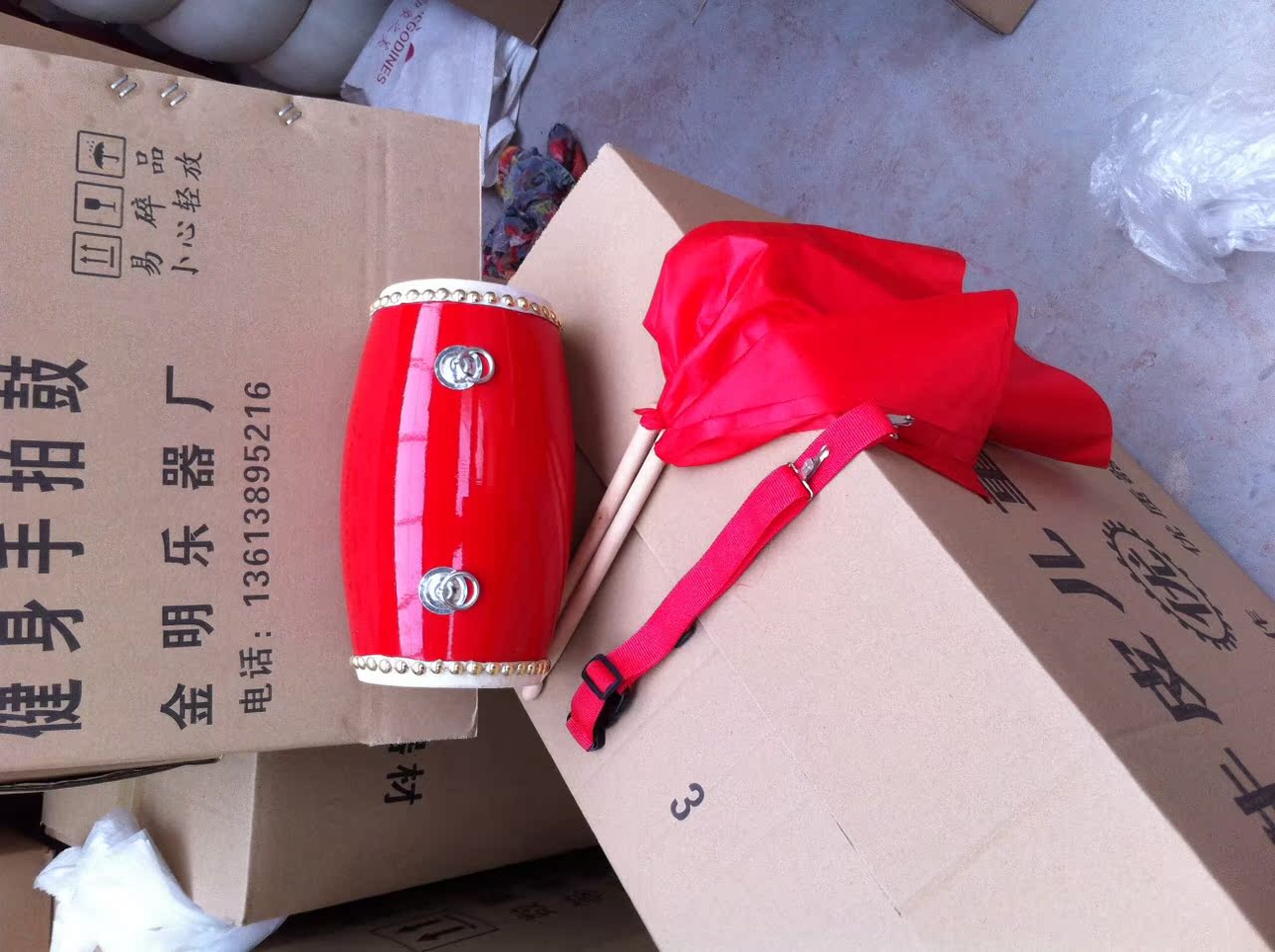Children's waist drum Kindergarten dance waist drum Small waist drum 12cm waist drum Yangge waist drum dance props Waist drum stick