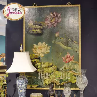 American luxury hand-painted lotus leaf lotus flower 1 4 m long wooden print Villa model room color paint hanging painting