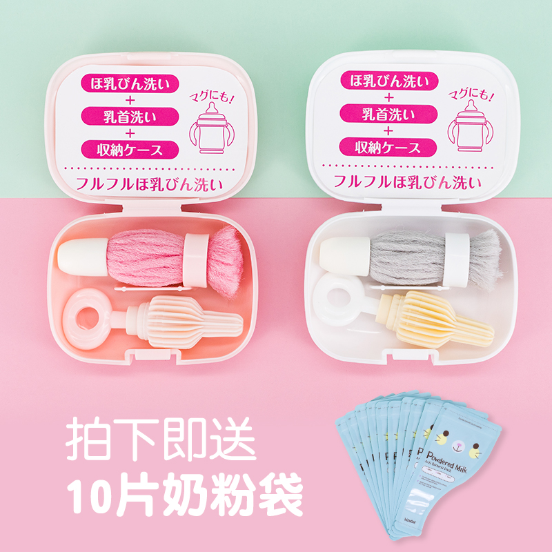 Imported Japanese milk bottle brush rotating pacifier baby with baby cleaning scrub set portable storage box