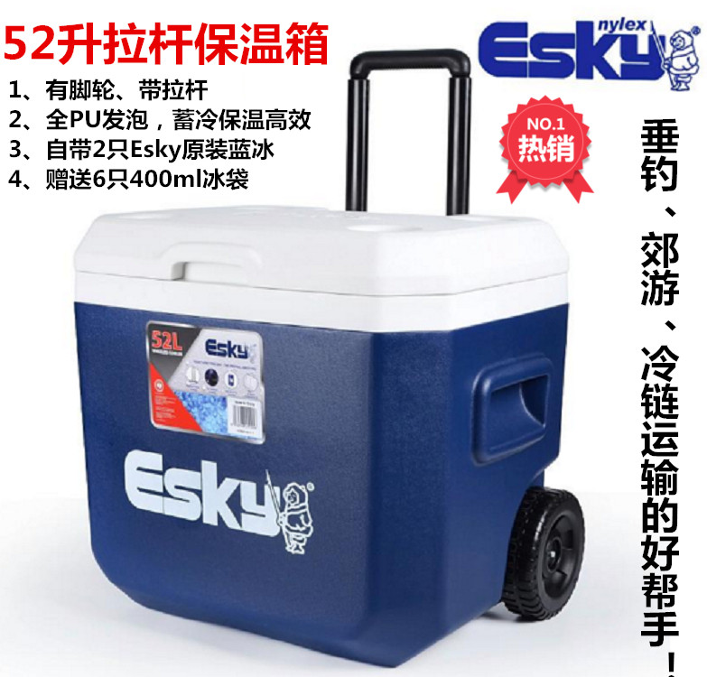 Esky insulation box 52L trolley insulation box refrigerator car insulation box camping cold chain send 2 ice blocks