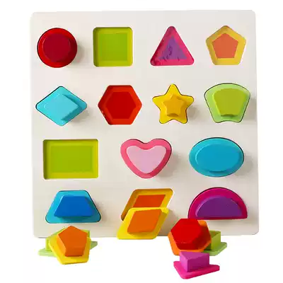 Shape cognitive matching Building blocks Early education toys Wooden three-dimensional geometry puzzle Children's puzzle force Infant baby