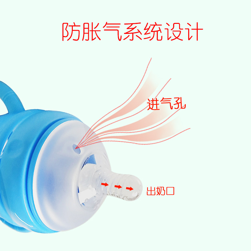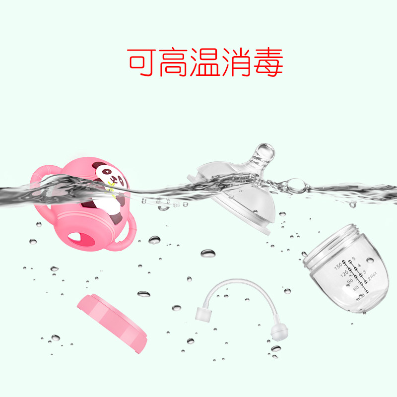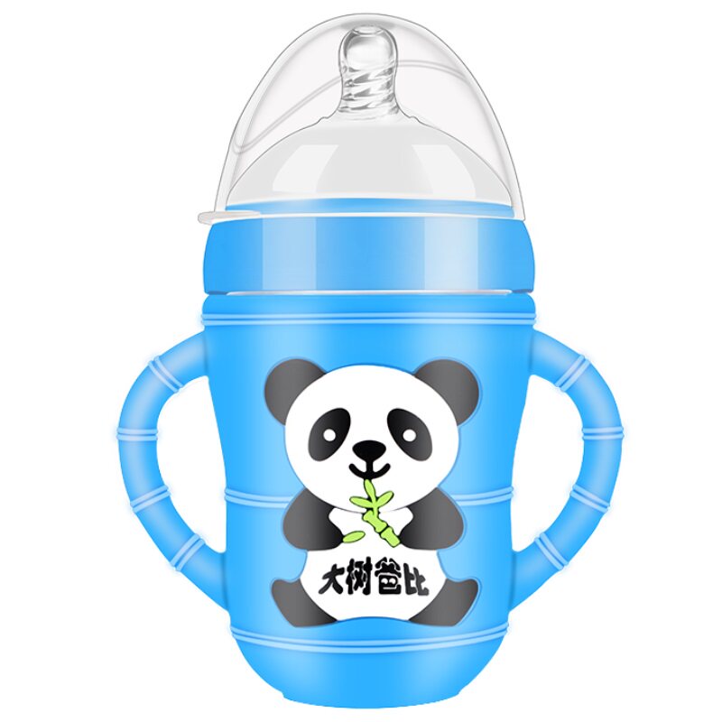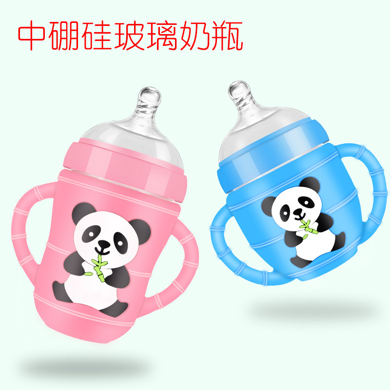 Newborn baby Children Newborn baby wide mouth diameter with straw handle Silicone protective cover Drop-proof small glass bottle