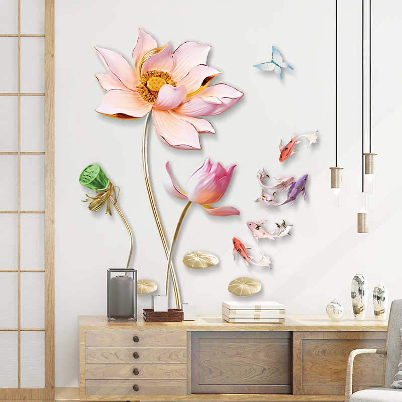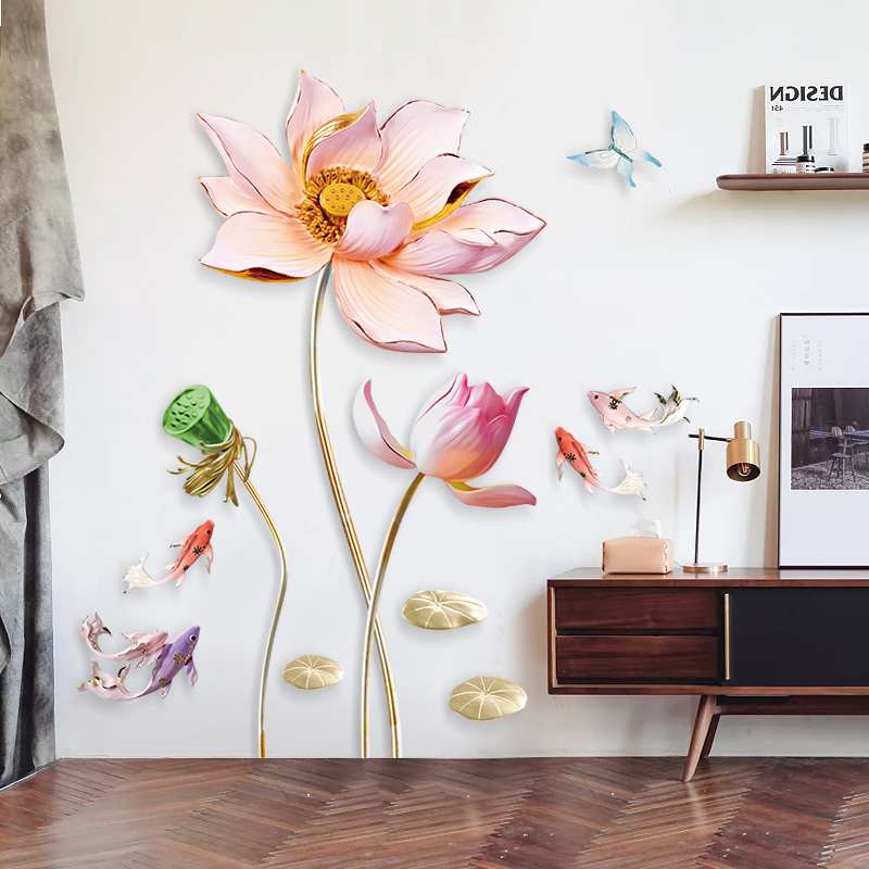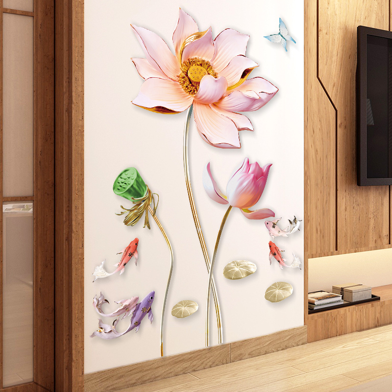 Relief lotus warm bedroom bed entrance wall decoration wall sticker Living room decal wallpaper Wallpaper self-adhesive