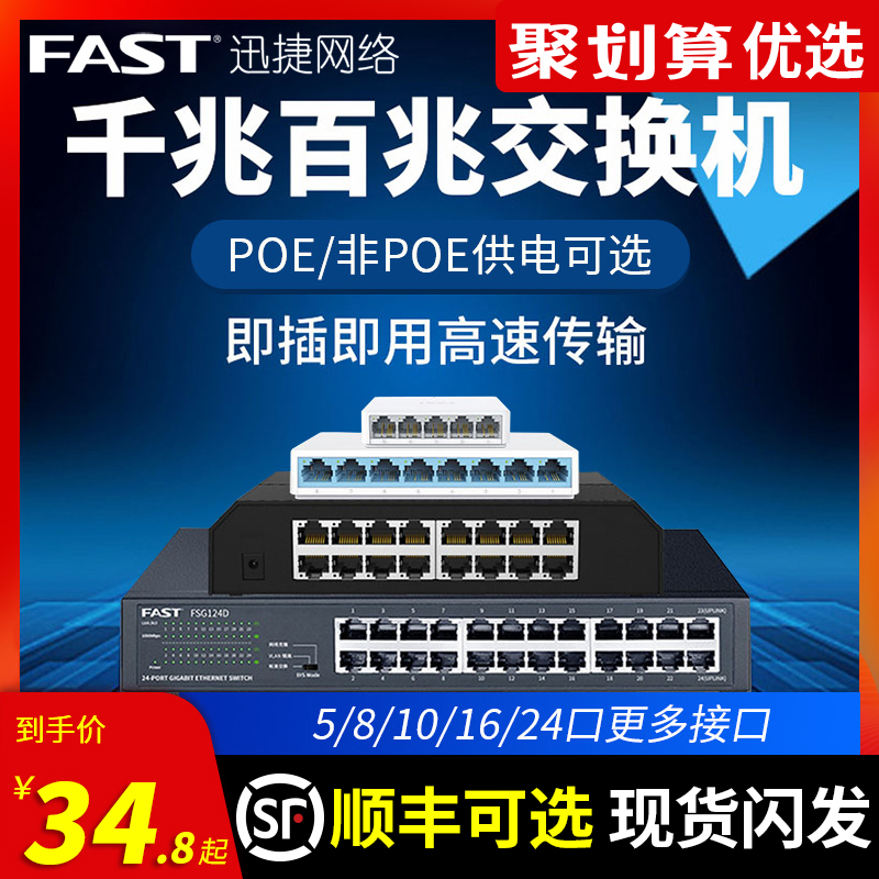 Xunjie 4-port 5-port 8-port 16-port 24-port Gigabit 100-gigabit switch 10-port five-eight-port POE network routing network cable splitter FAST dormitory household industrial-grade monitoring hub distributor
