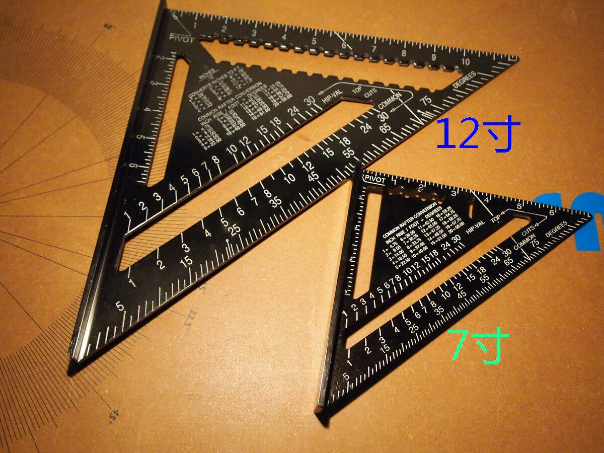 Small triangle ruler 7 inches (right-angle side) large triangle ruler 12 inches (right-angle side) large 12 inches small 7 inches