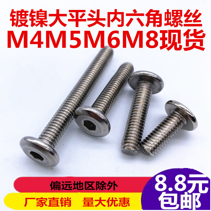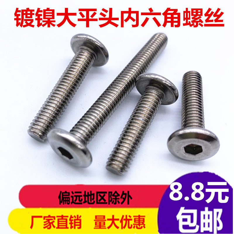 Nickel-plated oblique large flat head inner hexagon screw furniture combination connector flat cap screw pair lock screw M4M5M6M8