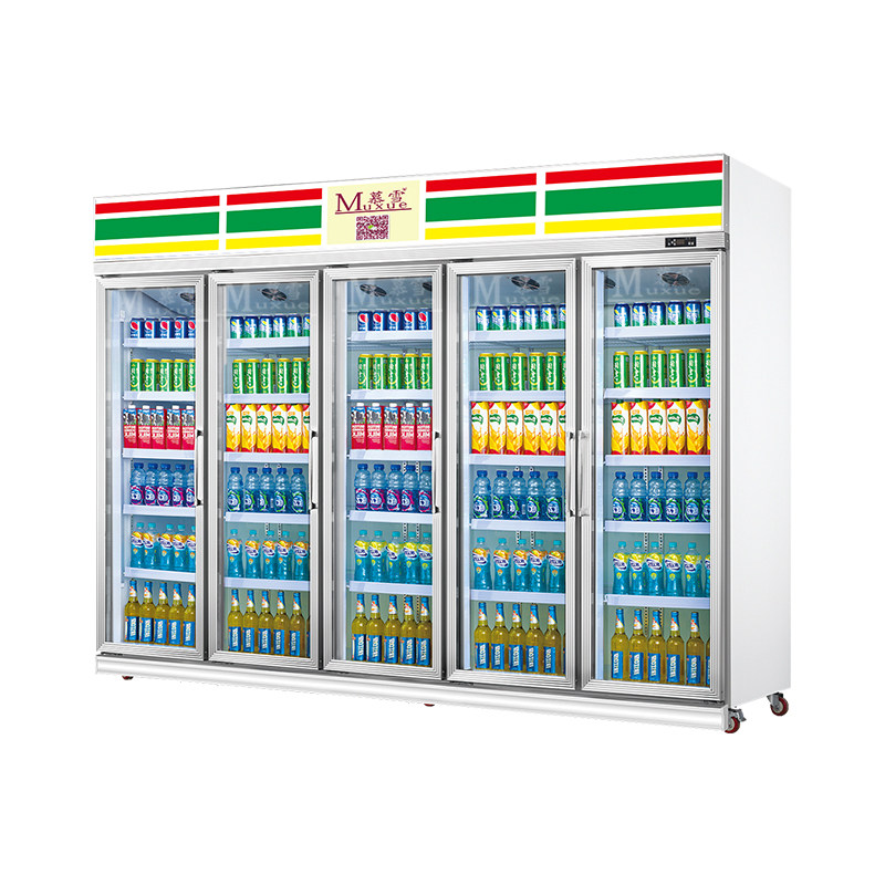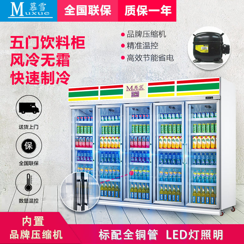 MousSnow Preservation Cabinet Display Cabinet Commercial Refrigerated Drinks Upright Five Doors Fruit 5 Door Supermarkets Vertical Glass Beers